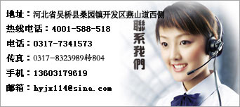地址:河北省吳橋縣桑園鎮開發(fā)區(qū)燕山道西側 熱線電話:4001-588-518 郵編:061800 電話:0317-8323988 傳真:0317-8323991